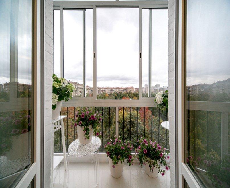 Французское остекление балкона алюминиевыми окнами от пола до потолка в Пушкино