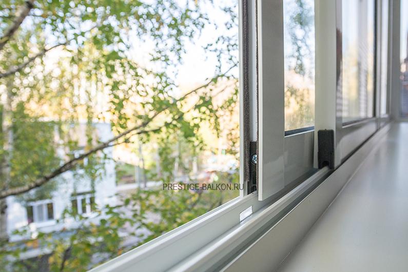 Раздвижное холодное остекление балкона с шумопонижающими отливами